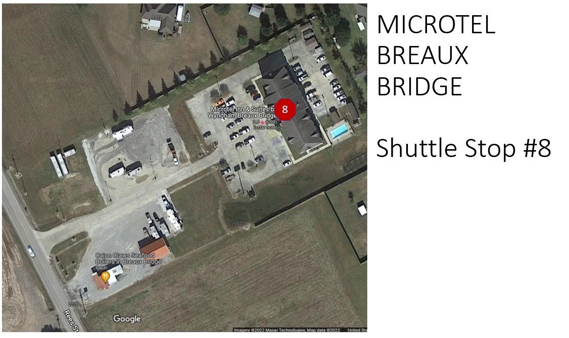 7:00a-9:00a - Microtel, Bayou Wilderness RV Campground, & Lafayette hotels to St. Bernard School